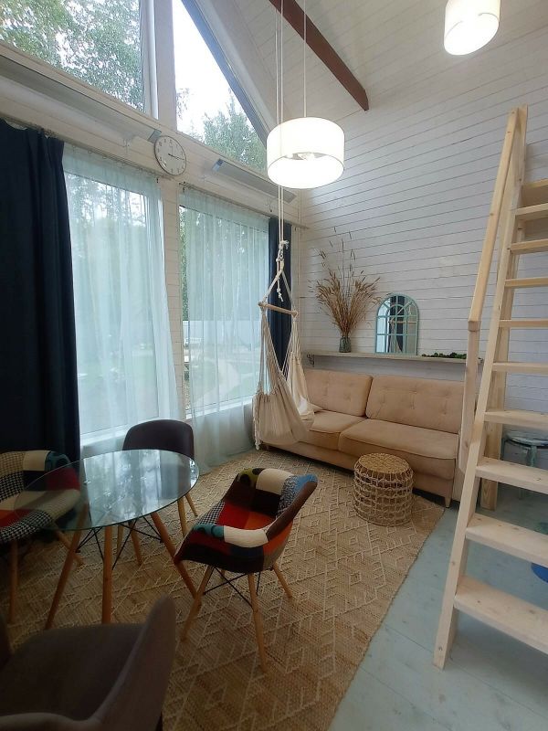 «Берёзовка» глэмпинг располагается в самой настоящей деревне. Предлагает три уникальных современных домика, в которых захочется побывать. В каждом своя изюминка и необычное интерьерное решение. У каждого дома своя уединенная терраса и костровая зона, оборудованные уличной мебелью, где уютно пить кофе на рассвете или же встречать закат с кружкой ароматного чая гамаки. Всё для чудесных спокойных вечеров на природе под шум берёз во дворе.